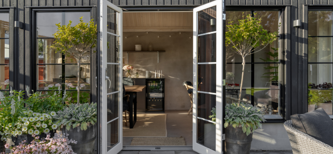 Inåtgående PVC parfönsterdörr 3-glas + spår för fönsterbleck